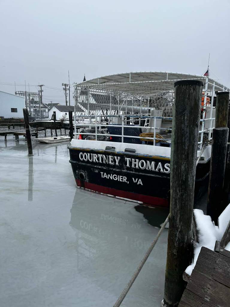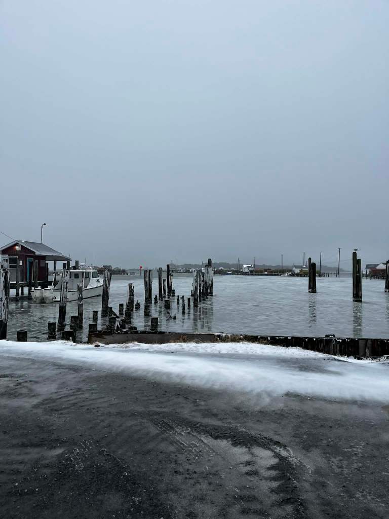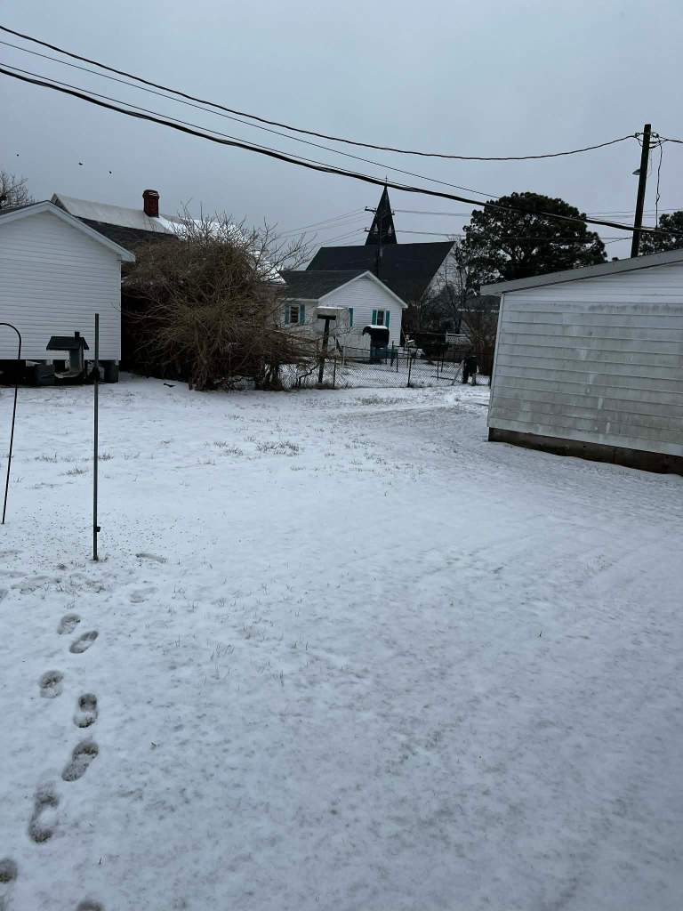 Photos from Jan. 25, 2026, of the winter snow storm that marched across Virginia, through Tangier Island and onto the Eastern Shore. According to Danielle Crockett, the temperature is around 34 degrees, though it feels colder. Snow, maybe an inch or so. Photos come from Barb Baechtel, Tina Parks, Danielle Crockett and Robin Pruitt — much appreciated.
